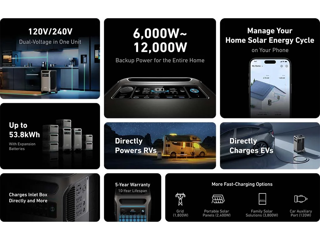 Anker Solix F3800 | 3,840Wh | 53,760Wh | 6,000W | 12,000W | Buy Now | F3800 on Amazon |