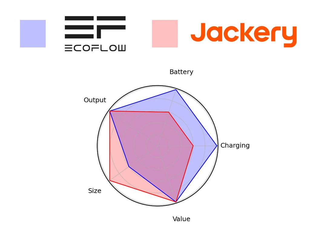 - Value: Both offer a great value at around $0.90 per Wh or less. Jackery is typically a little lower, but that comes with less features and capability. The value comparison is just about equal.